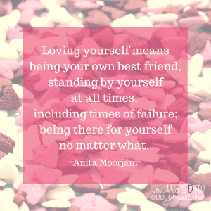 Also, self love involves caring for ourselves even when it’s really hard. You know…when we’ve made a terrible mistake, are having trouble forgiving ourselves, can’t seem to get our acts together or whatever else it might be! Simply put though, self love is not conditional. It’s behaving like a best friend to ourselves…all the time! Not just when it’s easy or convenient. Does this mean we do it perfectly? Not at all! We can only aim to do our best each & every day; to be kind to ourselves, caring to our ourselves & no matter what the circumstances are, doing our very best to be there for ourselves. Always!